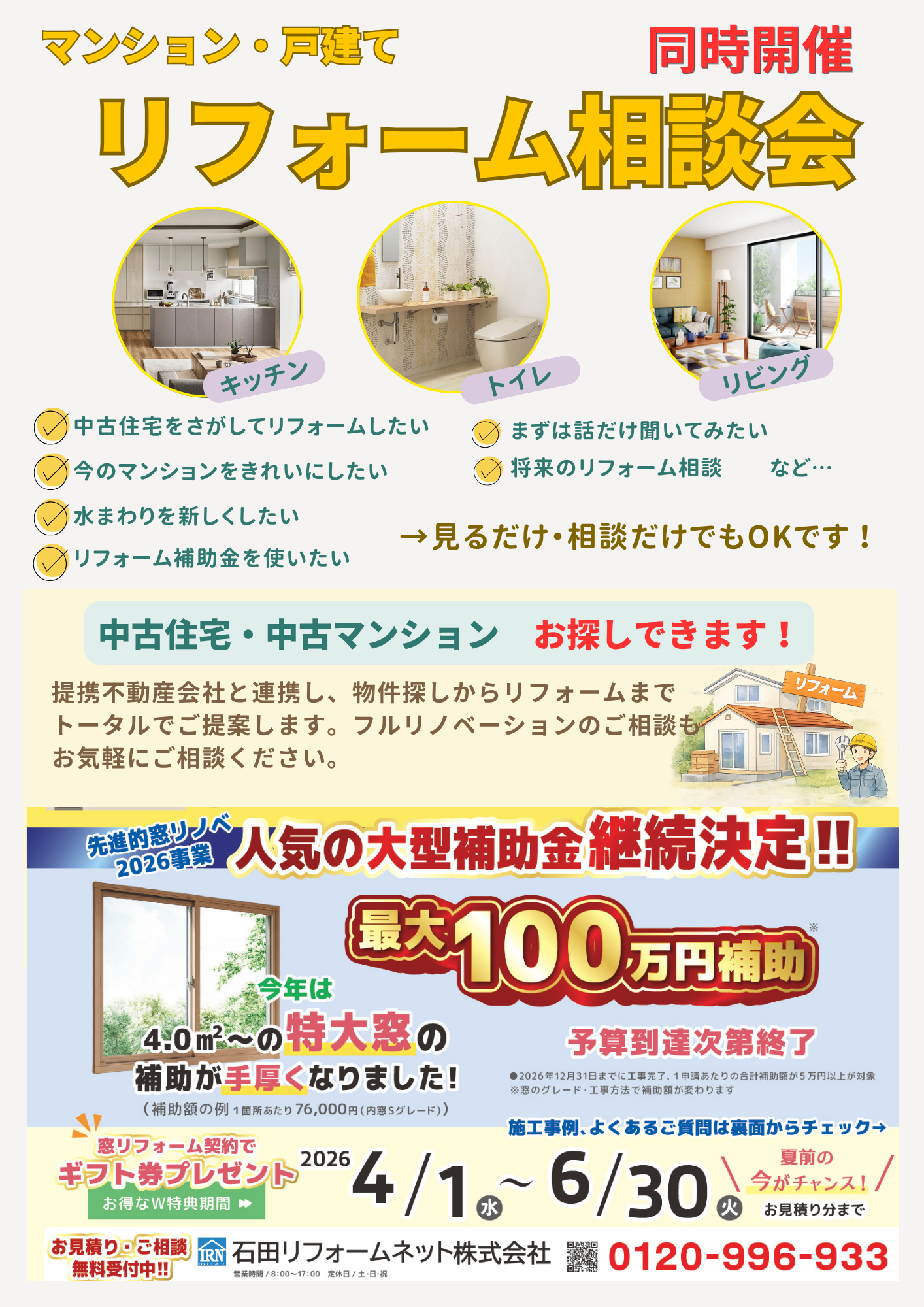 📞 ご予約・お問い合わせ:0120-996-933(石田リフォームネット)