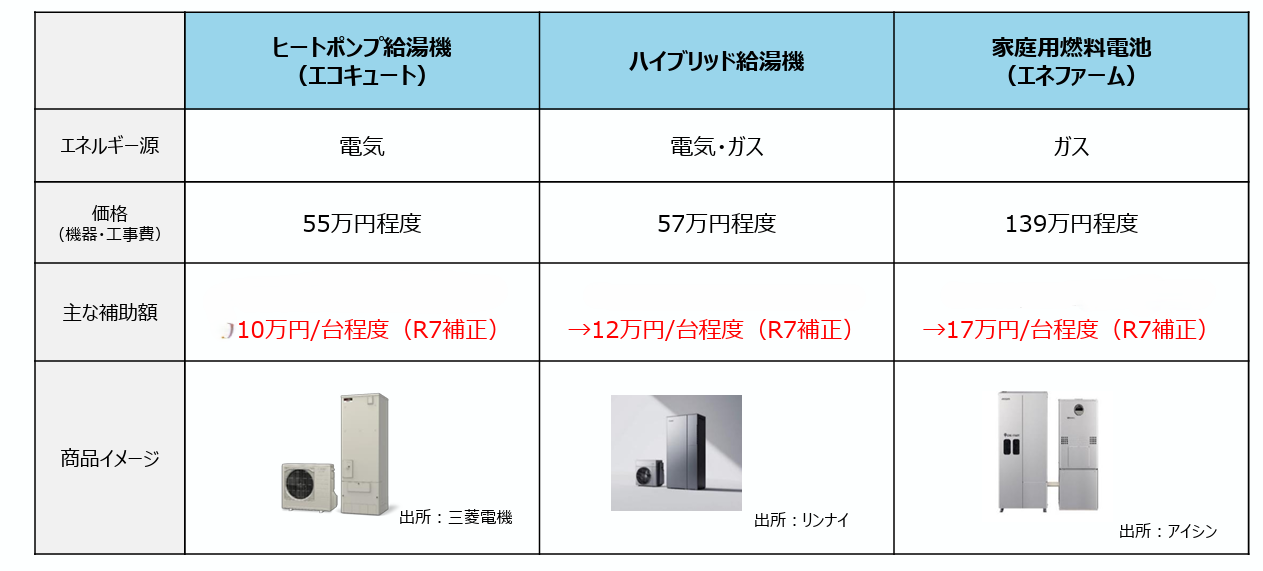 一定の基準を満たした高効率給湯器を導入する場合、機器・性能ごとに設けられた定額を支援